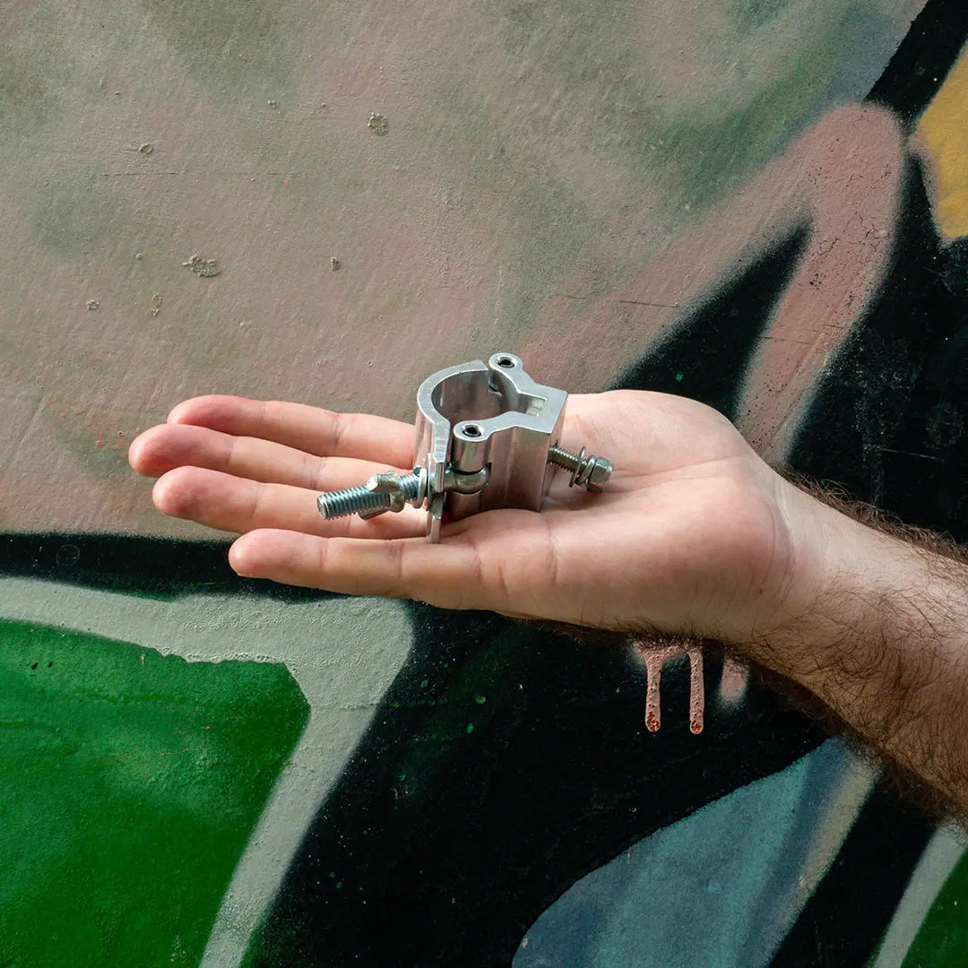 This 32mm aluminium wrap around clamp is perfect for hanging lights and fixtures that are on the lighter side. High quality wrap around clamp, made from aluminium with a polished finish. This lighting clamp has a max load rating of 30kg. Perfect for use with 32mm tube.