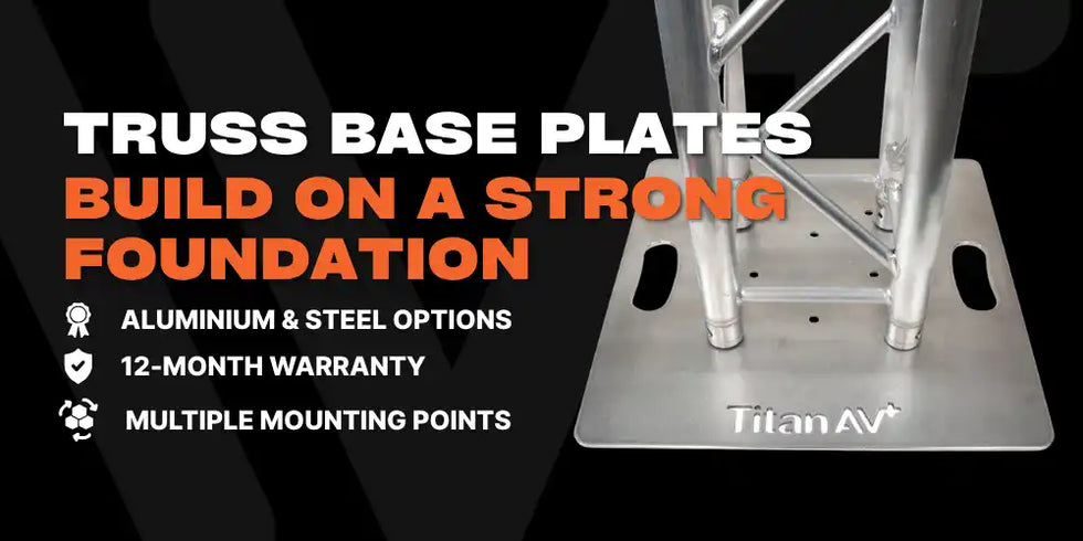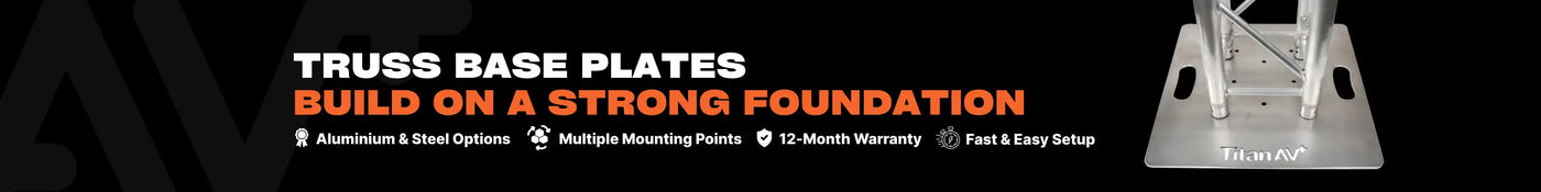 The Titan AV 800 Base Plate features multiple spigot mounting points—centre, centre-side, and corner—offering flexible positioning for both 290 Box and Tri Truss. This video shows how easy it is to adjust your truss footprint for clean installs, tight spaces, and custom stage layouts.