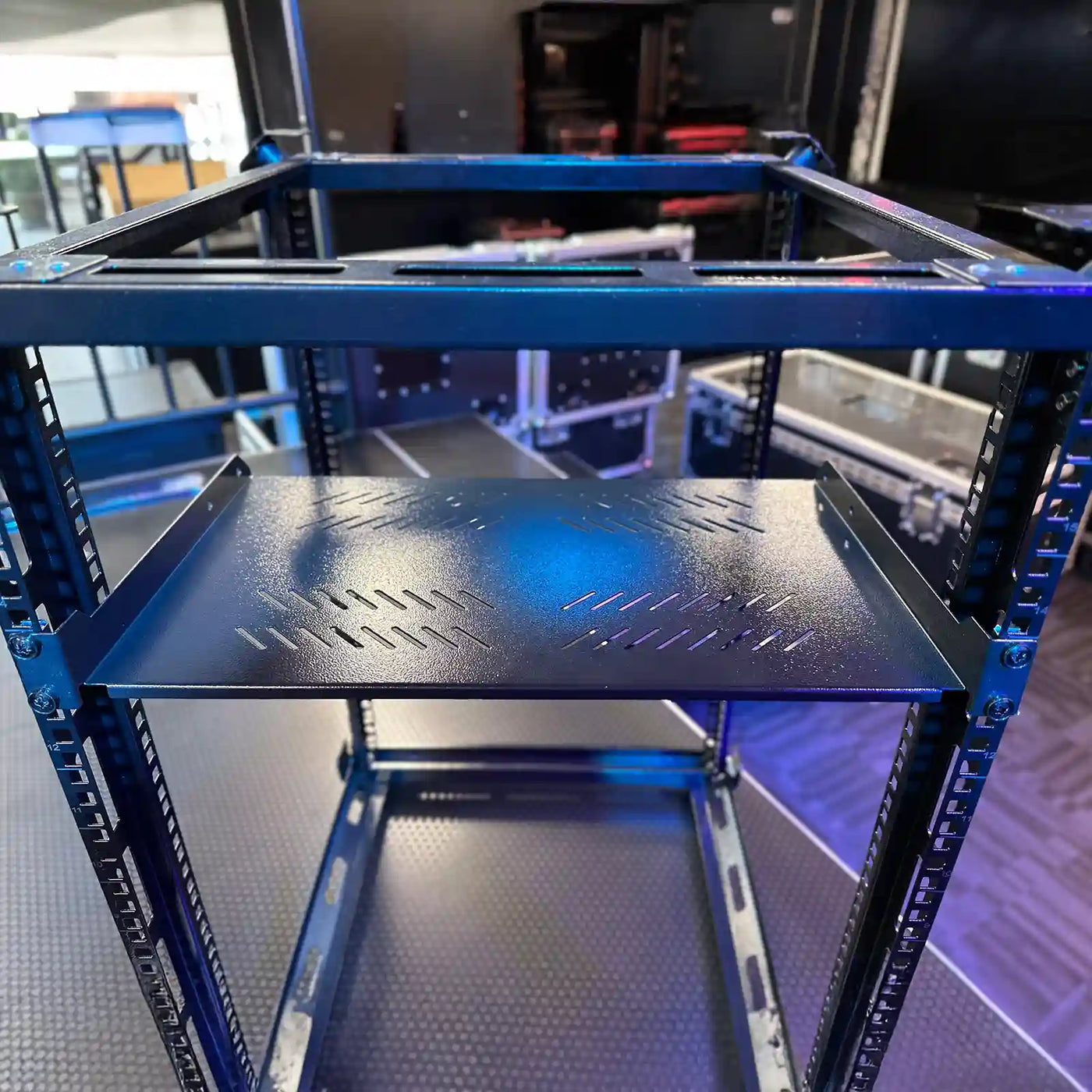 Store your non-rack-mount gear with Titan AV’s durable 19" rack shelves—versatile and strong for any setup.