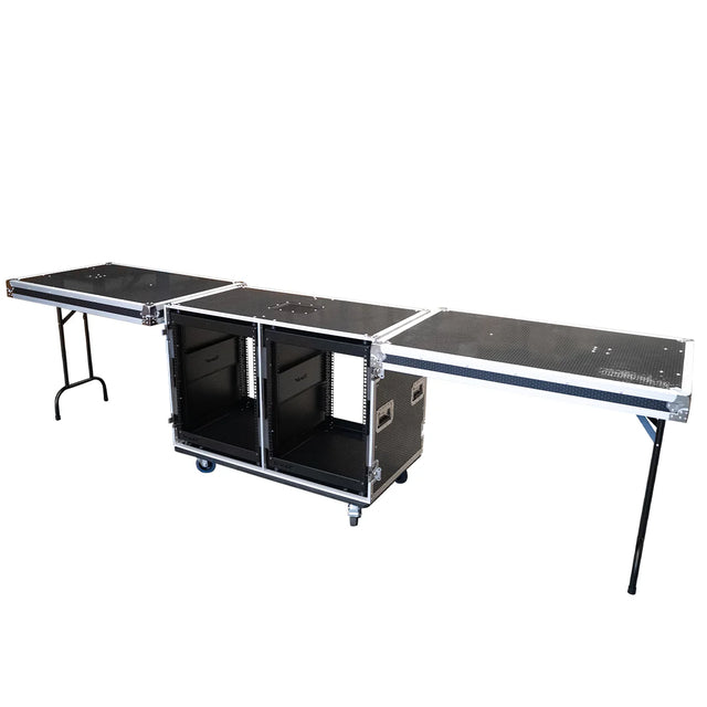 The removable front and rear lids transform into full-size side tables, creating an instant workspace on site without needing extra accessories. Whether you're at FOH, on tour, or managing a broadcast setup, everything you need is built into one rugged unit.