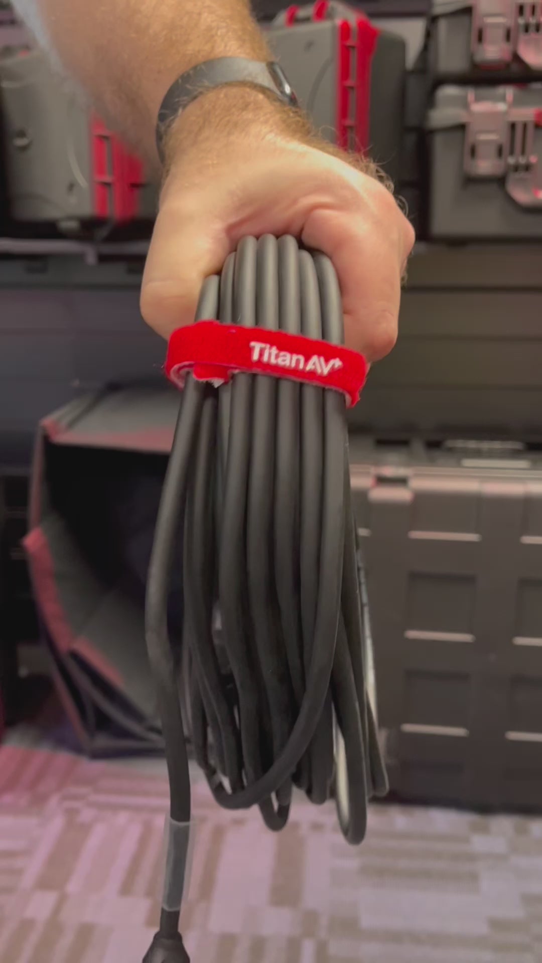 Titan AV cable management solutions are rock solid. Perfect for use in DIY at home jobs or commercial/professional level installations. Keeping lead packers, stages, workstations, studios and any audio environment neat and tidy is easy with Hook & Loop Fastener cable ties.