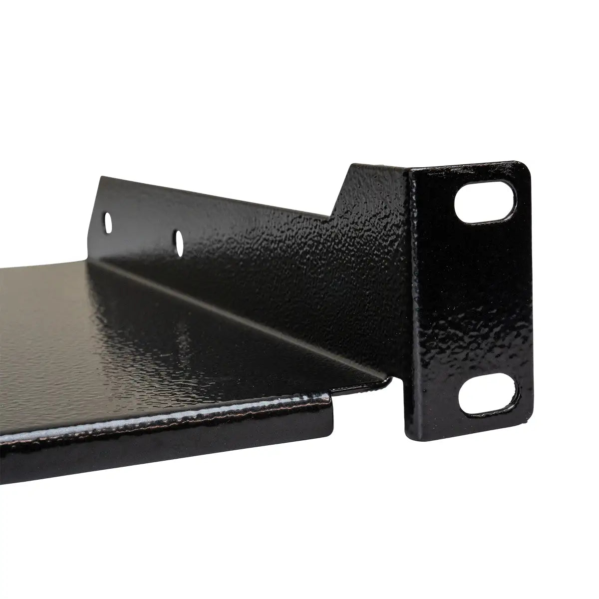 Compact, vented 1RU rack shelf for secure storage of AV & IT gear.