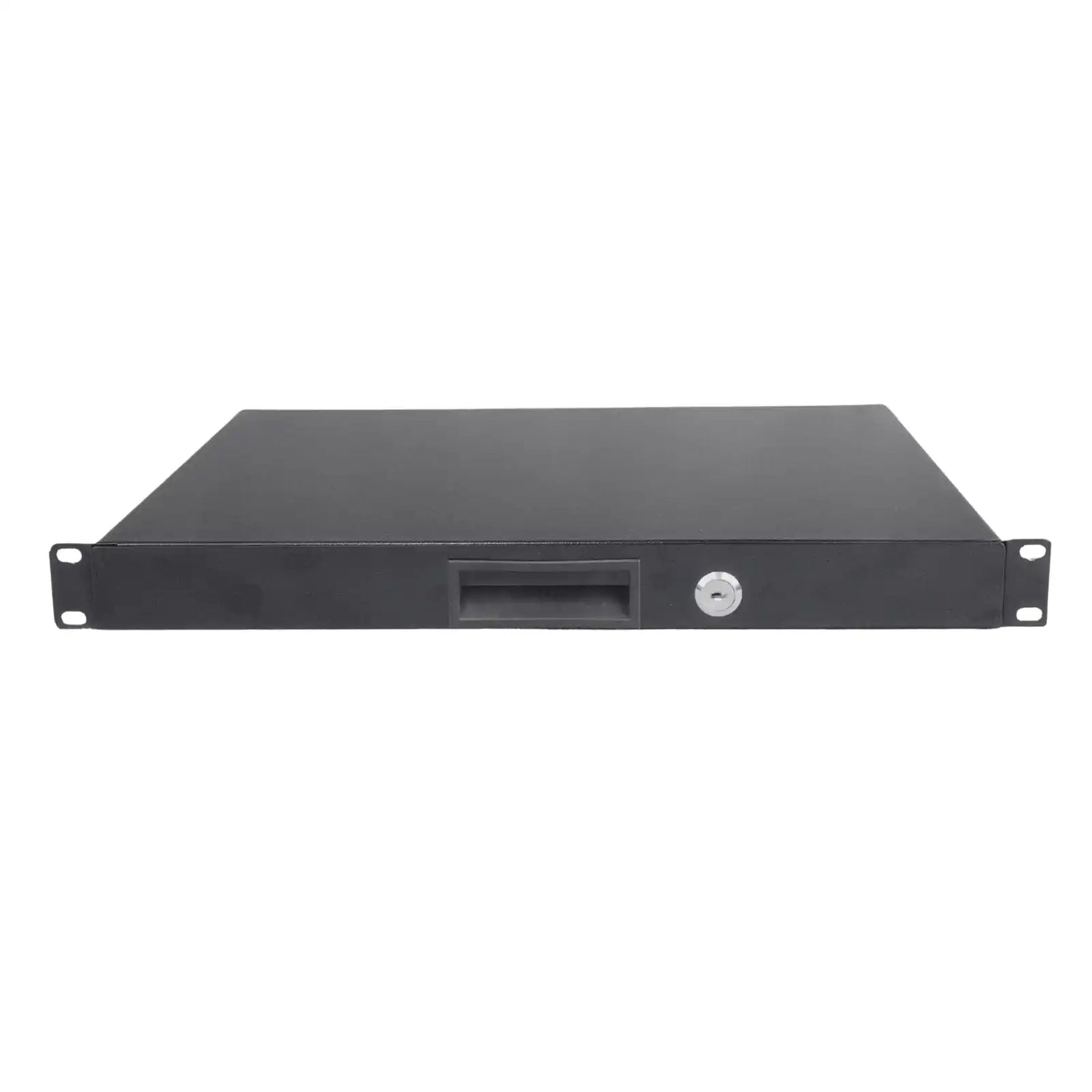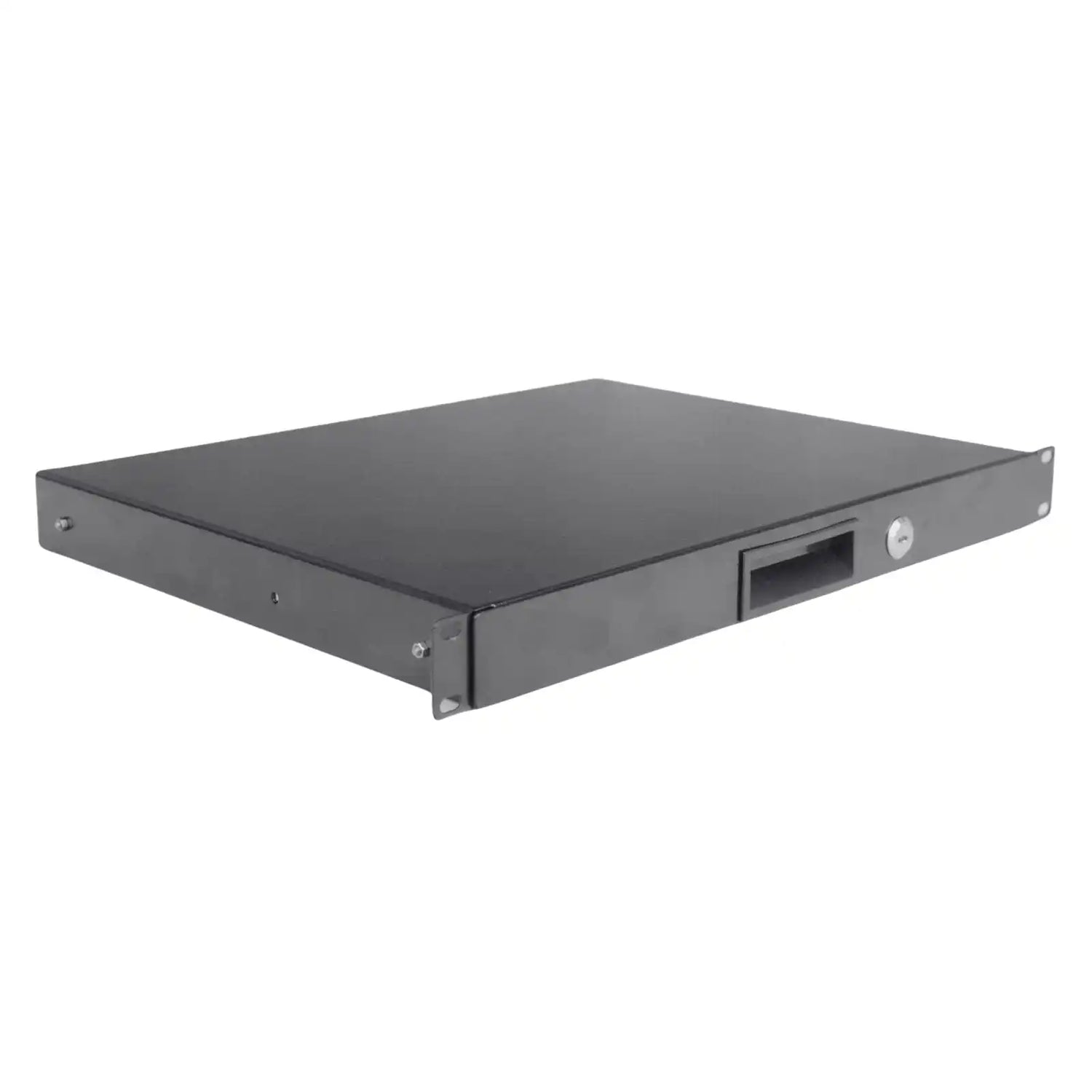 Compact 1RU drawer with lock, quiet glide rails, and fast install.