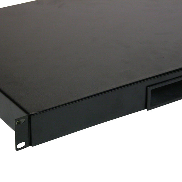 Compact 1RU drawer with lock, quiet glide rails, and fast install.